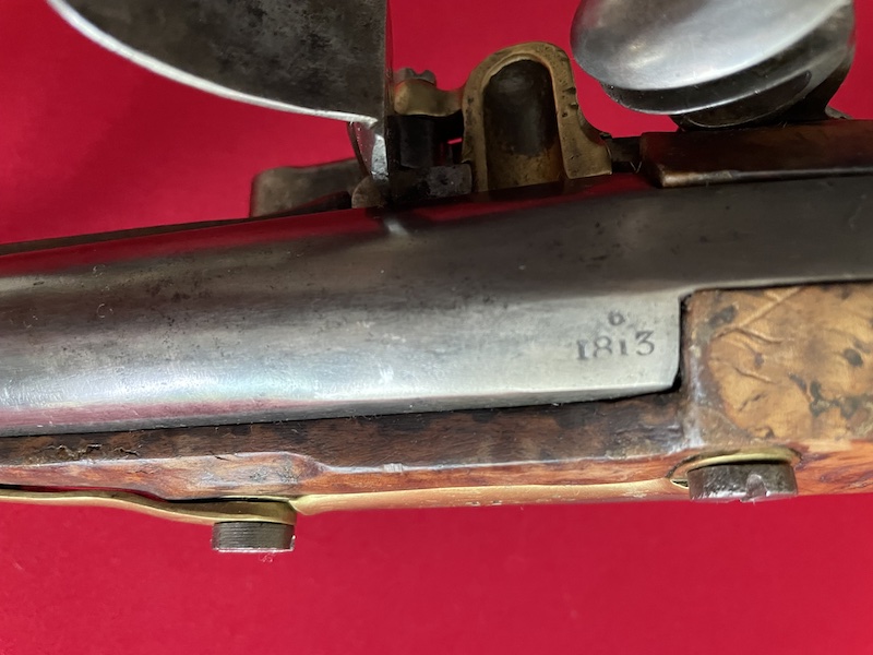 puis rond jusqu'à la bouche, marqué 1813 sur le flanc gauche, garniture bronze, crosse noyer,
