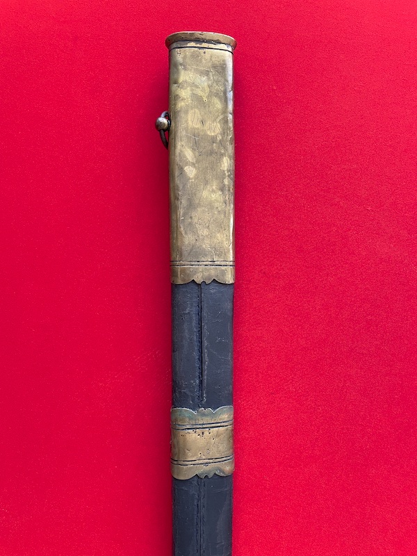 Sturdy, slightly curved blade.The leather-covered grip wrapped with brass wire.