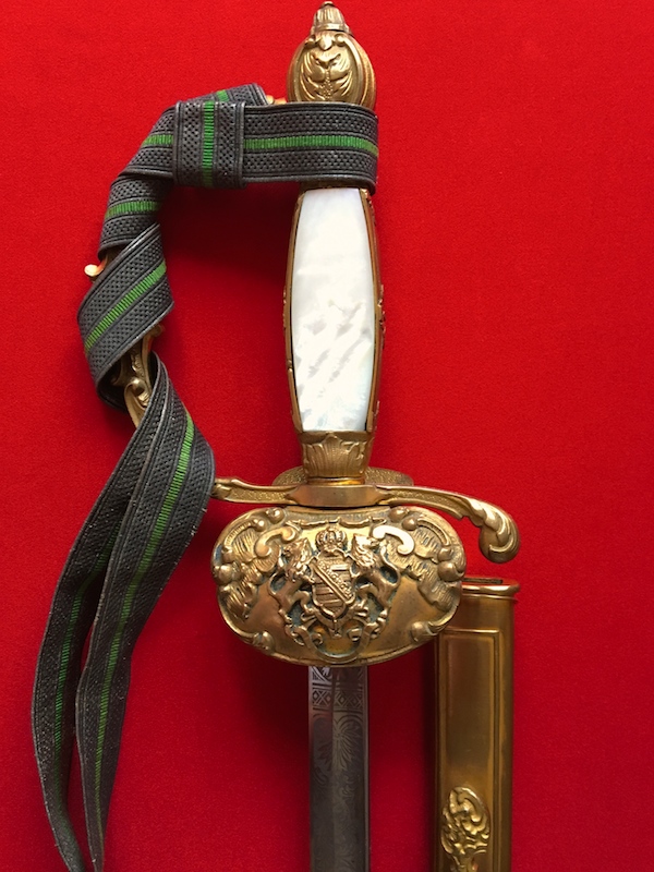 Klinge geätzt, mit sächsischem Wappen und Trophäen.