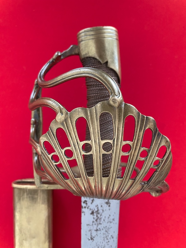 Messingscheide mit Ledereinsätzen (nachgebaut).
