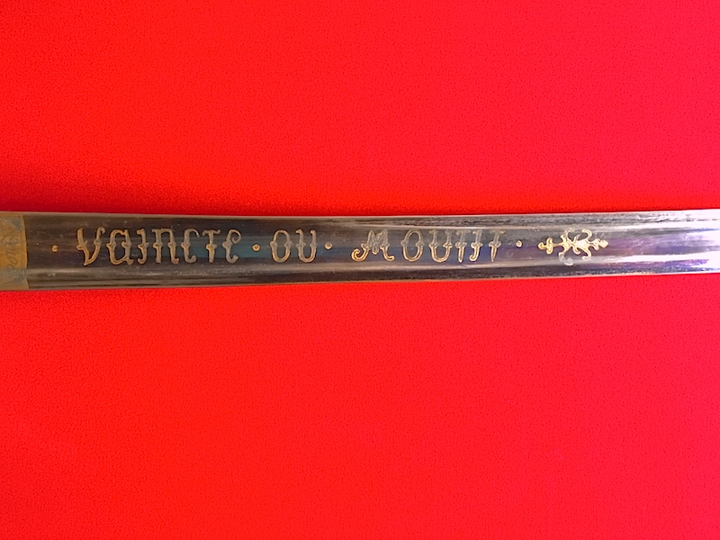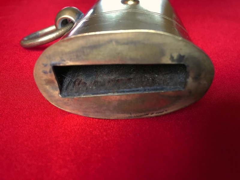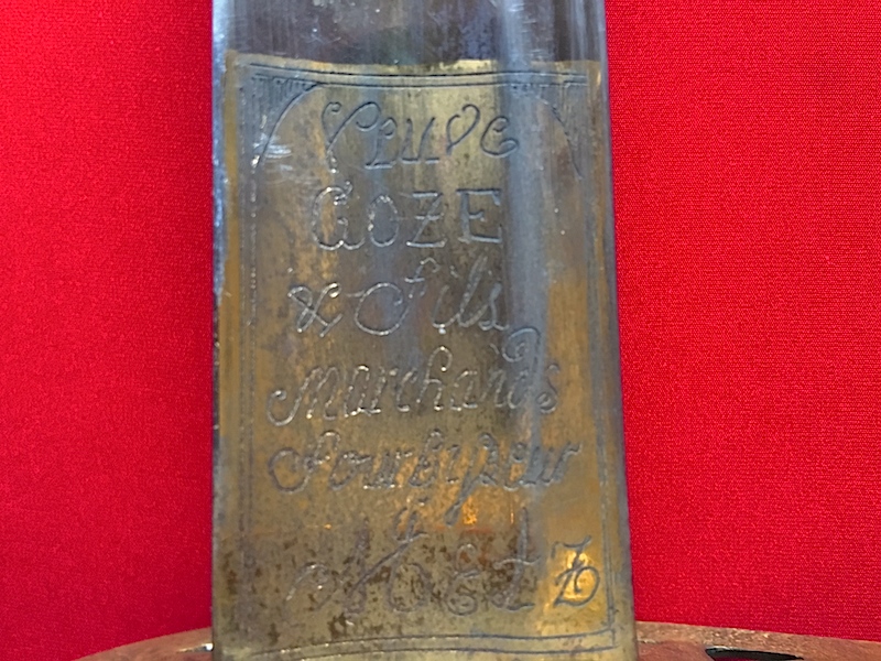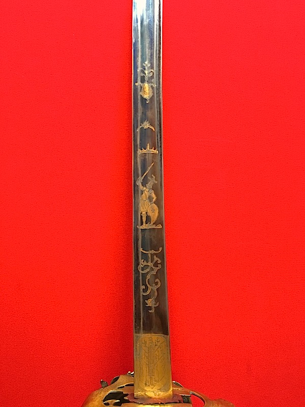 Vergoldetes Messinggefäß. Leicht geschwungene Rückenklinge, gebläut und vergoldet.