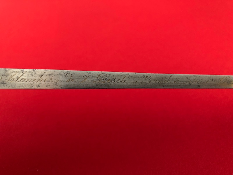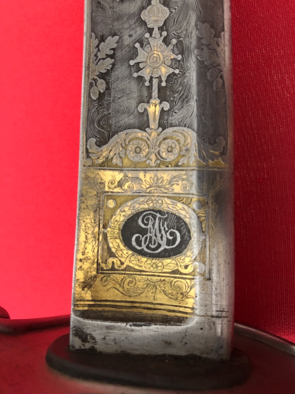 Monogramm„JM“vom Besitzer an der Klinge und Scheide (höchstwahrscheinlich persönlicher Säbel von Jean-Baptiste Antoine Marcellin de Marbot).