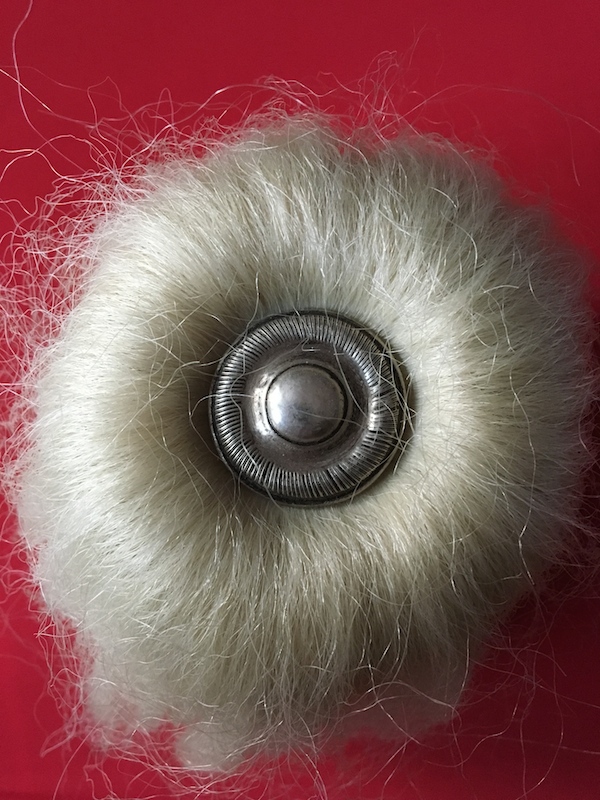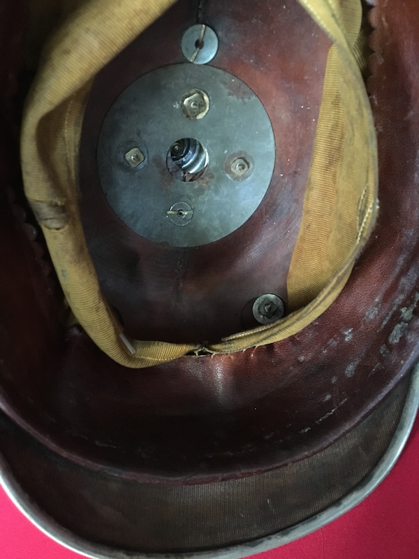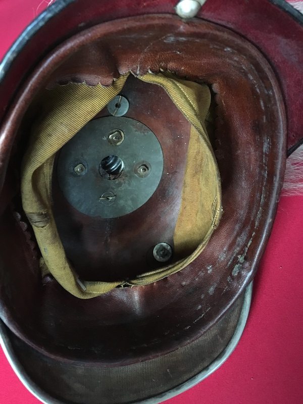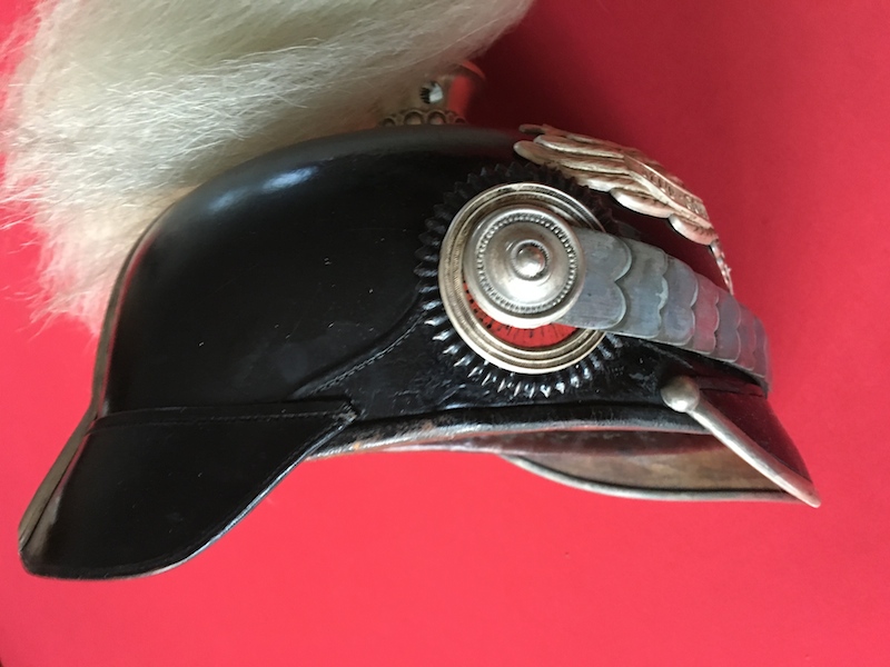 Schwarz lackierter Lederglocke mit Beschlägen aus Silber.